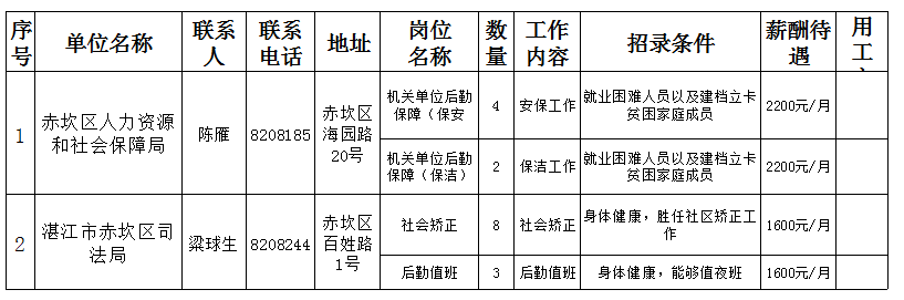 3、反映地区产业结构的调整:招聘信息的内容揭示了地区的产业结构和发展方向,通过观察和分析,我们可以了解赤坎海田地区的产业分布、发展趋势以及人才需求,对研究地区经济和社会发展具有重要意义。
