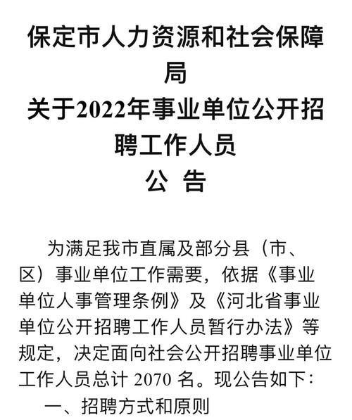 最新保定事业单位招聘对于人才选拔和社会发展具有重要意义,我们应关注招聘过程中的问题,不断完善招聘制度,确保公平、公正、公开,通过灵活设置招聘标准、加强与高校和职业培训机构的合作,共同推动保定事业单位的发展,只有这样,我们才能实现人才选拔与社会发展的良性循环,为保定的经济社会发展注入活力,希望本文能引发更多关于保定事业单位招聘的深入思考,为保定的事业单位发展献计献策。